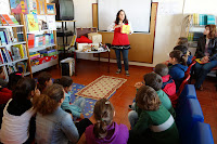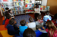 A biblioteca abriu a semana com a leitura de uma históra de António Torrado feita pela enacrregada de educação, sr.ª Lurdes Eusébio, à turma B do 2.º ano.
