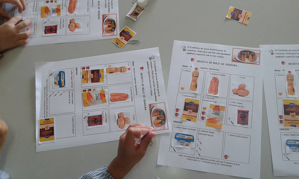 Assim, cada menino recebeu um conjunto de ingredientes que teve de colocar nos sítios certos consoante a quantidade necessária para cada um.