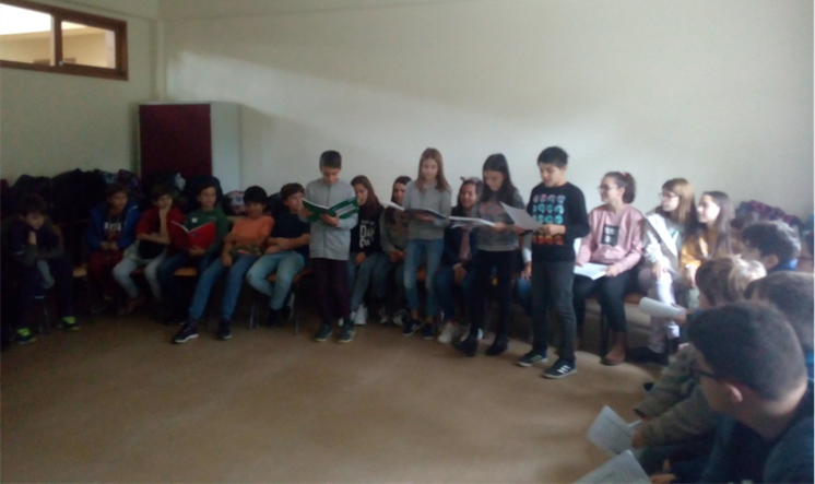 Nesse dia, várias turmas leram textos de Sophia na sala de aula. As turmas 6ºD e 6ºB, e as respetivas professoras de Português Dora Esteves e Maria Conceição Moscoso, juntaram-se na sala 14 para partilharem leituras.